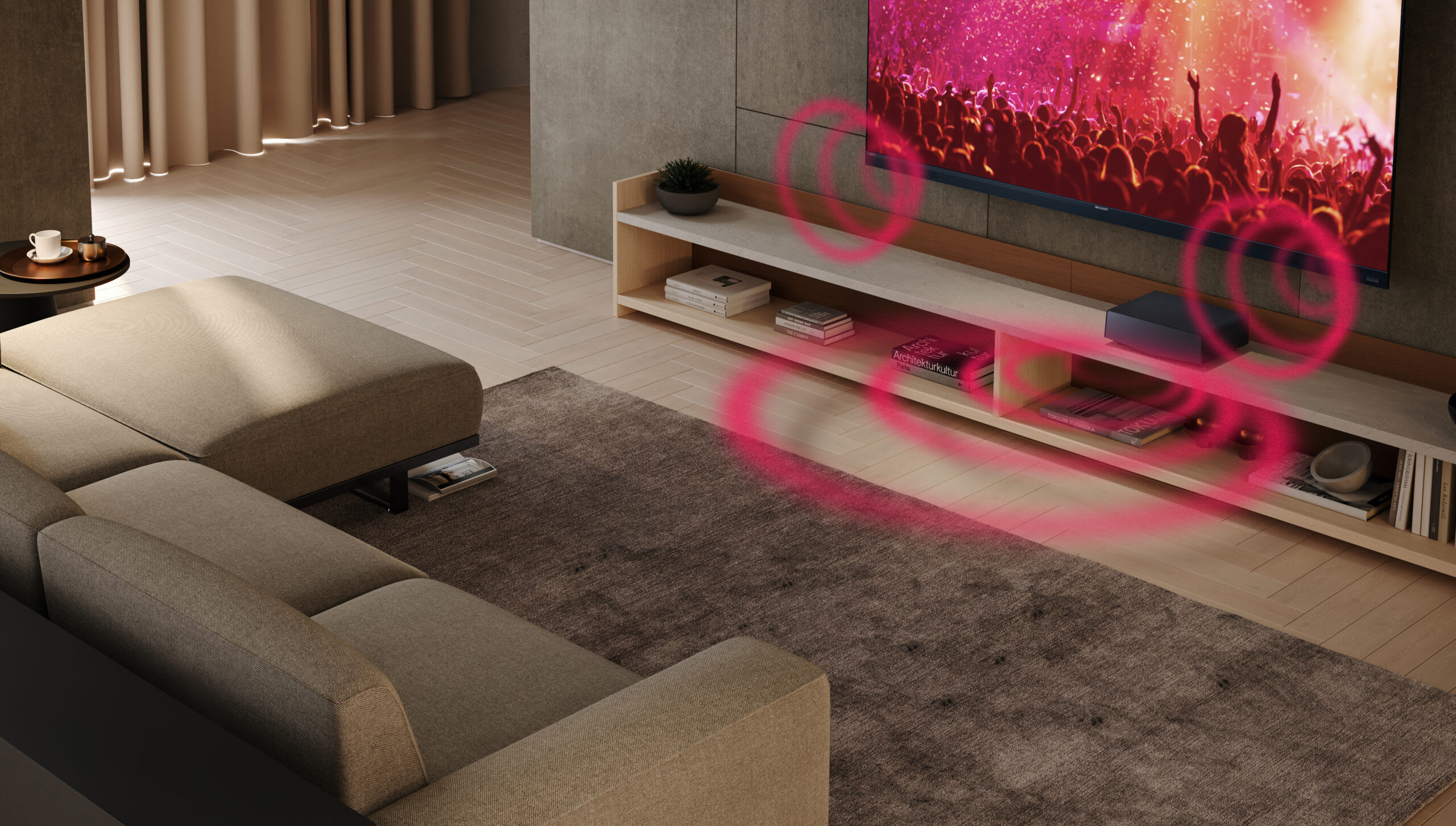 Cinema-style bass in the comfort of your home. Enhance the bass (low frequency) performance of your compatible Sharp AWS TV with the AQUOS Wireless Surround Subwoofer.